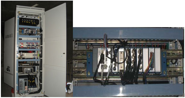 安装在现场的工作站一共有三个,主要完成就进传感器的数据收集、整理与传输。CRIO采集模块首先对安装在大桥上的各种类型传感器的信号完成必要的预调理后按一定的采样频率进行模数转换(A/D),同时在数据采集站计算机上保存,最后各种类型的传感器的模拟或数字信号经预处理、采集后从现场的数据采集站通过工业以太网有线传送至位于管理监控中心的数据处理与控制计算机上。具体安装如图10所示。