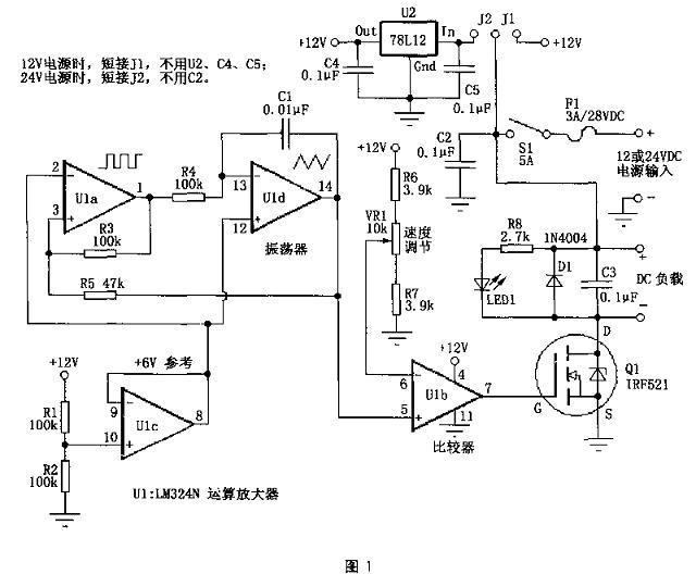 PWM 电动机 电路 LED 电压 电阻 射频 滤波器 振荡器 比较器 场效应管 电流 相关文章: