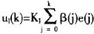 来计算权系数β(k),其中参数ε根据需要调整,当e(k)2=ε时,β(k)=0.5。此时,积分控制量写为:
