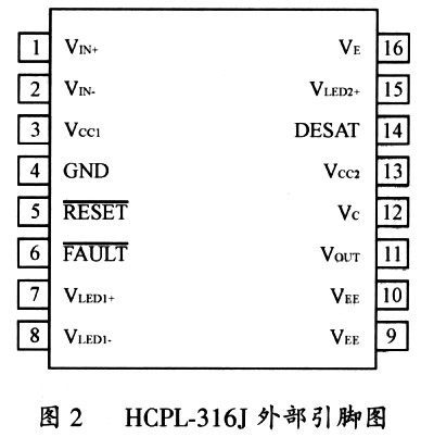 HCPL-316J的内部结构如图1所示,其外部引脚如图2所示。