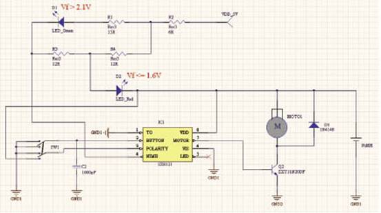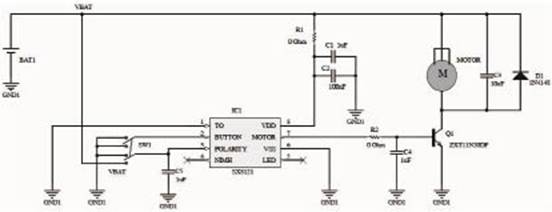 对于非充电路的设计,只需将NIMH管脚处于悬空的状态,通过BUTTON来控制MOTOR管脚的输出,从而控制马达旋转或关闭。