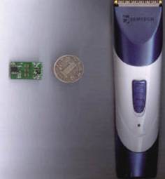 图2为该非充电式电推剪原理图。SX8121所需的外围元器件非常少,设计非常简单。图3为PCB和电推剪实物,由于SX8121本身尺寸很小(SOIC-8封装),且外围器件较少,所以PCB尺寸很小(包含开关仅2.6cm×1.6cm)。该SX8121控制板连接电池和马达,并通过开关来控制马达的启动或关闭。