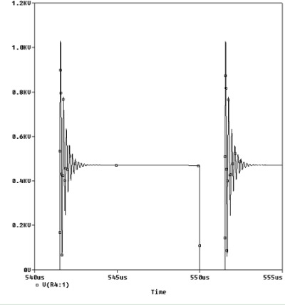 输出功率100W以下的AC/DC电源通常都采用反激式拓扑结构。这种电源成本较低,使用一个控制器就能提供多路输出跟踪,因此受到设计师们的青睐,且已成为元件数少的AC/DC转换器的标准设计结构。不过,反激式电源的一个缺点是会对初级开关元件产生高应力。 反激式拓扑结构的工作原理,是在电源导通期间将能量储存在变压器中,在关断期间再将这些能量传递到输出。反激式变压器由一个磁芯上的两个或多个耦合绕组构成,激磁能量在被传递到次级之前,一直储存在磁芯的串联气隙间。实际上,绕组之间的耦合从不会达到完美匹配,并且不是所有的能量都通过该气隙进行传递。少量的能源储存在绕组内和绕组之间,这部分能量被称为变压器漏感。开关断开后,漏感能量不会传递到次级,而是在变压器初级绕组和开关之间产生高压尖峰。此外,还会在断开的开关和初级绕组的等效电容与变压器的漏感之间,产生高频振铃(图1)。
