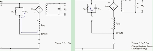箝位设计必须同时考虑变压器和MOSFET的特性。如果最低箝位电压低于变压器的VOR,箝位将充当一个负载,耗散的不仅仅是漏感能量。如果箝位元件过小,它们可能变得过热,无法预防危险的电压,并会产生不必要的EMI。最为重要的是,箝位必须对各种电源输入电压、负载电流和元件容差条件下的MOSFET提供保护。