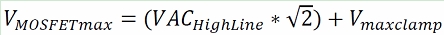 4.确定初级MOSFET所允许的总电压,并根据以下公式计算Vmaxclamp。