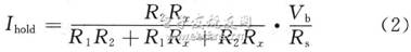 其中外部三极管可以改变分压比,使参考电压Vref发生变化,从而减小输出电流。此时的Ihold由电阻R1,R2,Rx,Rs以及电压Vb共同决定: