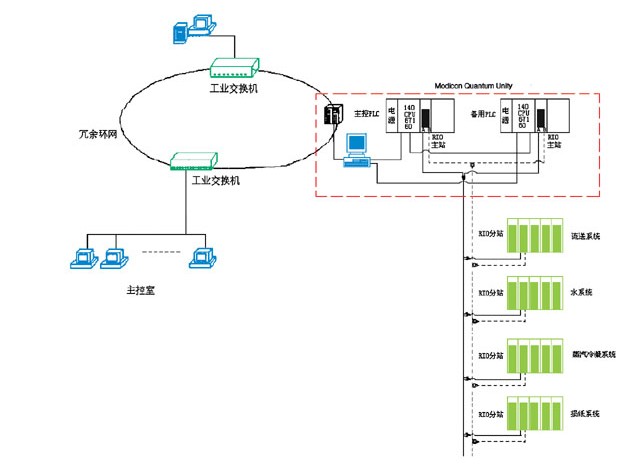 造纸控制系统采用的是冗余PLC系统,其切换功能包括:当主控PLC发生故障时,自动将数据流、程序逻辑切换到冗余备用PLC;当系统启动时,自动决定PLC的主/备状态;当主控PLC从故障中恢复后,自动解决PLC间的状态冲突。