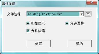 在此组件中可以指定组件是否初始可见,是否可以在运行的时候允许使用鼠标漫游图形,是否允许进行缩放操作。同时,需要在此对话框指定需要显示的dxf文件。