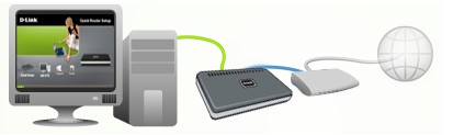 (1)将D-LINK路由器的WAN口与ADSL-MODEM的以太网口相连。