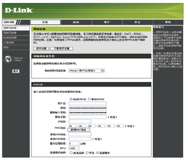 (6)登录后,进入“安装向导”,选择互联网连接方式为动态PPPoE(DSL),输入用户名和密码(即为向电信申请的账户密码),选择连接模式为总是连接,然后“保存设置”,这样就实现了路由器自动拨号登录上网,而无需手动拨号。这也为后续EN01-SL的联网提供了基础。如图4所示。