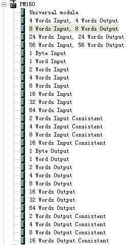 将PM-160添加到STEP7的组态页面后,可以插入相应的数据块进行映像区地址映射。PM-160提供的数据块如下: