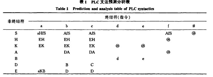在对PLC程序进行编译时,先将由PLC其他语言编写的程序转化为指令表后再进行处理。程序语言的文法通常包括I组终结符、I组非终结符、1个开始符号和1组产生式。