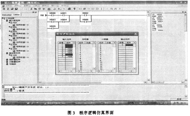软PLC程序的逻辑仿真结果表明,开发的软PLC编译系统能实现软PLC梯形图与指令表程序的相互转换,完成软PLC程序的文法设计和语法分析,对软PLC程序的运行指令作出正确解释,并能按照PLC的工作原理运行,使PC机完成相应的控制功能。开发的软件系统能很容易地实现PLC程序的编辑和逻辑仿真,系统结构简单,使用方法简便,为今后进~步研究和开发软PLC的下位机系统、不断完善软PLC系统的功能和实现其良好的控制特性奠定了基础。
