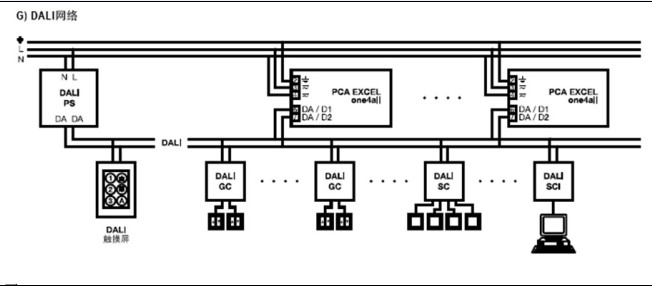 如今,DALI接口已不仅仅限用于荧光灯镇流器调光,各种卤钨灯电子变压器,气体放电灯电子镇流器,LED也采用了DALI接口调光;控制设备还包括:无线电接收器、继电器开关输入接口。各种按键控制面板、包括LED显示面板都已具有DALI接口,这将使DALI的应用越来越广,控制器从最小的一间办公室扩大到多间房间的办公大楼,从单个商店扩大到星级酒店。