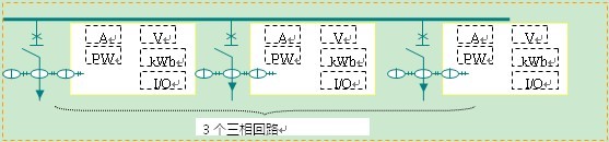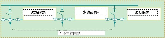 图5为AMC系列三相多回路智能监控单元的典型应用图。在应用中,出线回路中的3个三相负载的所有电参量测量都由1个AMC三相多回路监控单元来实现。并带有Modbus通讯输出,供用户远程监测和控制。