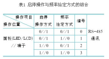 撇开rs-485串行通讯方式,变频器的启停操作方式和频率给定方式一般都各自有2种:操作面板和端子。因此,我们可以得出变频器如表1所述的4种组合运行方式: