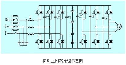 为了再生能量能够回馈电网,变频器的主回路采用双向逆变方案。主回路原理示意图如图5示。