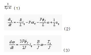 其中:ud, uq是d,q轴定子电压;id,iq是d,q轴定子电流;r是定子电阻;l是定子电感;tl是恒定负载转矩;j是转动惯量;b是粘滞磨擦系统;p是极对数;ω是转子机械角速度;φf是永磁磁通。