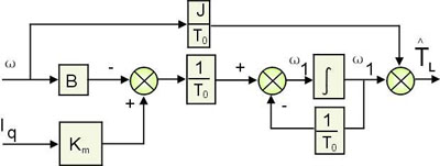 由于负载扰动不易直接测量,这里可以通过已获得的iq、ω加以观测。考虑到iq、ω的测量会产生噪声误差,故在tl观测器的输出端附加一滤波器