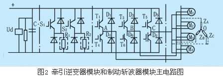 牵引逆变器模块和制动斩波器模块主电路如图2所示。