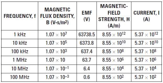 通过将下列数值插入方程式8中,推导出表 1 所列磁通密度的频变值: