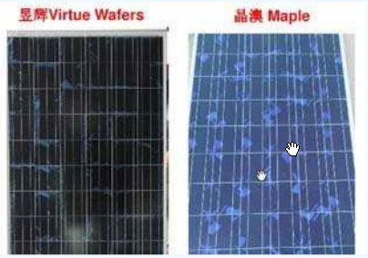 准单晶产品也引发了各个企业对电池工艺的改进。硅片的晶向控制、位错密度、碳氧浓度和杂质分布,以及侧边问题会直接影响电池片效率。不同于普通多晶,准单晶产品更适合碱制绒工艺,形成倒金字塔型织构化表面,可显著提高成品电池片效率。晶澳太阳能针对准单晶电池片发明了先酸制绒后碱制绒的特殊工艺,目前maple系列电池片效率已经达到了18.2%。然而由于碱制绒的各项异性,准单晶中尤其边缘,非指定晶向处无法腐蚀,会在电池表面形成高亮区域,影响组件成品的外观。