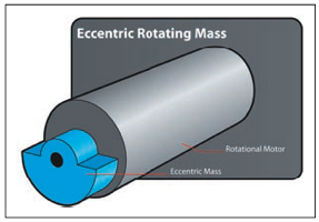 偏转质量是市场上最老也是最成熟的触觉反馈技术。回想您童年时代的所有具备震动功能的设备,这种震动大多是由 ERM 实现的。如图1所示,ERM包含有一个偏心旋转质量,它旋转时形成一个全方向的震动,震动传遍整个设备,例如,您的手机处于静音或者震动模式时便利用震动提醒您。