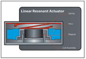 不幸的是,由于ERM的结构问题,形成复杂波形的能力有限。每个波的频率和振幅一起耦合至输入控制电压,让您仅能使用一个变量来产生不同的震动效果。一般而言,您仅能得到不同的脉冲或者速度组合,其与莫尔斯电码差不多。相比更新的技术,唤醒马达让其工作随后再停止的这种方法存在一定的局限性。当要求速度和响应时间时ERM便成为相对较慢的一种选择。但是,这种技术的优点是,由于它已存在相当长一段时间,是目前可以使用的几种高成本效益方案之一。线性共振传动器 (LRA)--新兴派