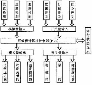 用PCC 控制取代目前在注塑机上大量采用的独立温度控制系统和所有的开关量控制,实现对若干典型的故障现象的自动保护、提示、报警,包括上下限报警、正负偏差报警、报警不灵敏区预设。依据原料及产品的特点对注塑机的工艺进行控制,实时监测和显示生产流程,并对温度、压力、位置等连续变量进行闭环控制,对行程、阀门、泵等开关量进行逻辑顺序控制等,大幅度提高了注塑机的生产效率, 其性能和易操作性也会有较大的改善, 具有较高的实用价值。