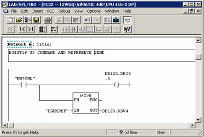 下面我们以起升机构为例, 编写一段岸桥起升运行程序。