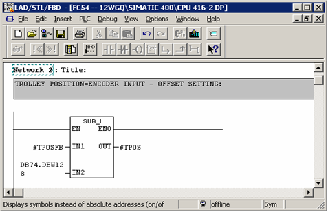 结合岸桥主要机构,辅助机构控制的功能FC,以及PROFIBUS总线通讯数据传输的功能块FB等,完成了岸桥PLC程序的设计。