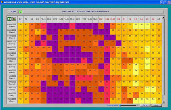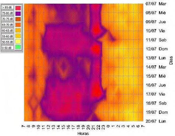 图2. 墨西哥城城市广场两周时间的噪音情况