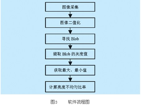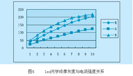 对r、g、b三种不同颜色led进行了测试,实验结果(如图5)表明,运行结果能满足led产品检测要求。以下几个问题值得注意:检测对外部条件要求较高,应在暗室或遮光罩内进行,避免杂光噪音的干扰;电子快门和暴光时间不能过长,应保证视场中最亮部分的灰度值不大于255;相机的自动增益功能须设为off,手动增益设为0;为保证ccd不饱和,可在ccd前加衰减片;电子快门和暴光时间不能过短,应保证视场中最暗部分的灰度值大于二值化阈值。