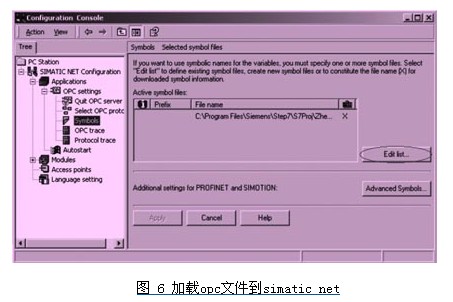 首先在计算机“开始”菜单中打开simatic net的configuration console。进入到组态界面后,在application栏中依次点击选择opcsetting和symbols,之后点击右边的edit list按钮。
