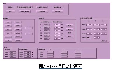 将变量自动连接到通讯通道中后运行wincc项目,可在画面中读到opc服务器中的变量实际值,而opc服务器中的数据则来自现场的运动控制器中。至此,wincc实现了与simotion d445的数据连接,通过opc的通讯机制。图8为wincc项目监控画面。