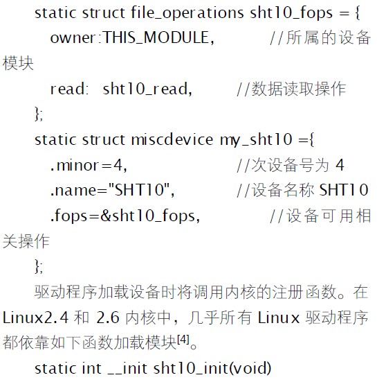 温湿度传感器使用Linux 内核的Miscdevice 数据结构在驱动程序初始化时将设备注册到内核。
