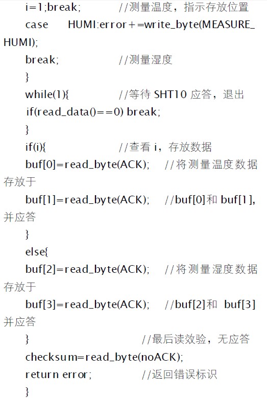 测量和通讯结束后,SHT10 自动转入休眠模式。数据传送采用两线制串行接口(与I2C 接口不兼容)。