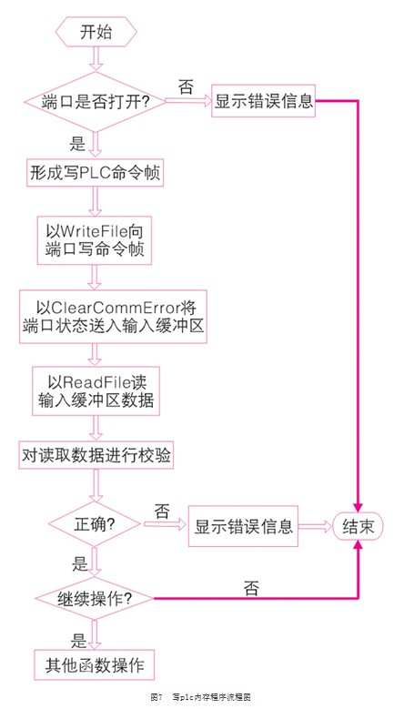 (1) 将计算机发出的命令写入plc,实现计算机对plc的控制功能。工作流程如图7示。