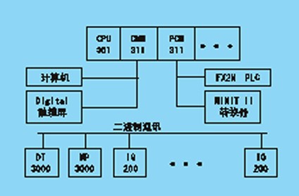 本系统采用ge fanuc 90-30系列plc model351,一块智能通讯模块cmm311,一块可编程智能通讯模块pcm311,及开关量输入、输出模块,模拟量输入模块若干。