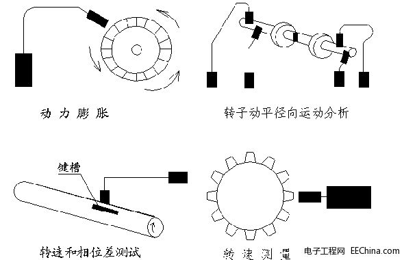 对使用滚动轴承的机器预测性维修很重要。探头安装在轴承外壳中,以便观察轴承外环。由于滚动元件在轴承旋转时,滚动元件与轴承有缺陷的地方相碰撞时,外环会产生微小变形。监测系统可以监测到这种变形信号,当信号变形时意味着发生了故障,如滚动元件的裂纹缺陷或者轴承环的缺陷等,还可以测量轴承内环运行状态,经过运算可以测量轴承打滑度。