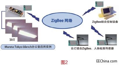 利用这些特色产品,村田不仅能实现单灯短距离调控系统,配合其他技术还可实现楼宇照明远程控制系统。通过网关的强大功能以及ZigBee的组网特点,可实现在短时间内进行入网设置、组网设定以及休眠状态激活进行通讯。