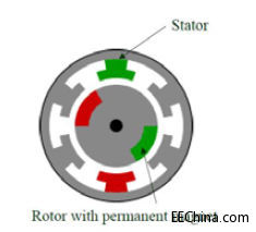 无刷直流(BLDC)电机为同步电机,转子和线圈绕组中设有永久磁铁。它们可在电机定子上产生电磁(参见图5)。电气端子直接连接至定子绕组;因此,转子上未连接刷子或机械装置(如有刷电机)。BLDC电机使用直流电源和开关电路,在定子绕组上产生双向电流。开关电路必须在每个绕组中使用一个高端开关和低端开关,因此一个BLDC电机共使用6个开关。