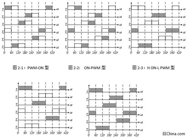 在上桥下桥PWM开关控制顺序不同,我们可以做出下面5种模式的选装。