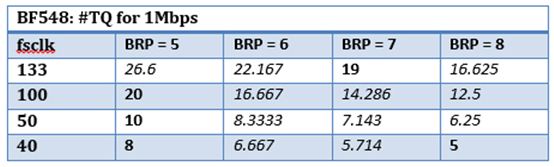 表1. 用于1 Mbps的时钟和BRP组合