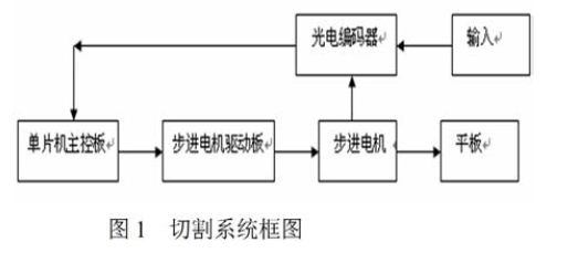 切割控制系统结构框图如图1所示,是由光电编码器模块、单片机控制模块、步进电机驱动模块、伺服机构和自由摆本体等几大部分构成的一个系统。在整个系统中,通过光电编码传感器的反馈获得末端被控机械的角位移,控制驱动模块实时读取光电编码器反馈的数据,进而确定控制方式(电机如何转动、转动速度、加速度等),同时控制模块通过处理器内部的控制算法实现该控制决策,产生相应的控制信息,使电机转动,完成要处理的被控制对象的运动。