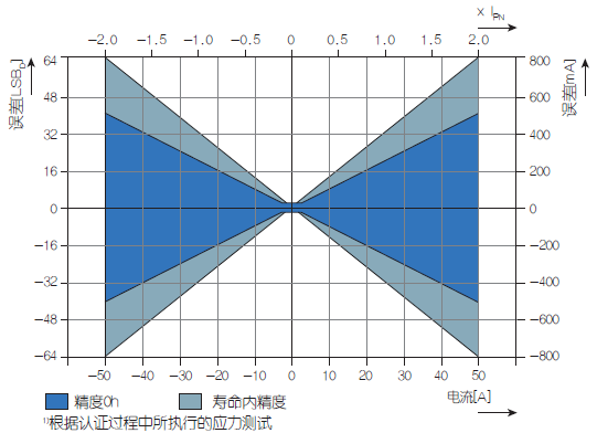 图1:TLI4970在整个温度范围和生命周期内都具有极高的精度—最高为1.0%(0h),在整个生命周期内最高1.6%。