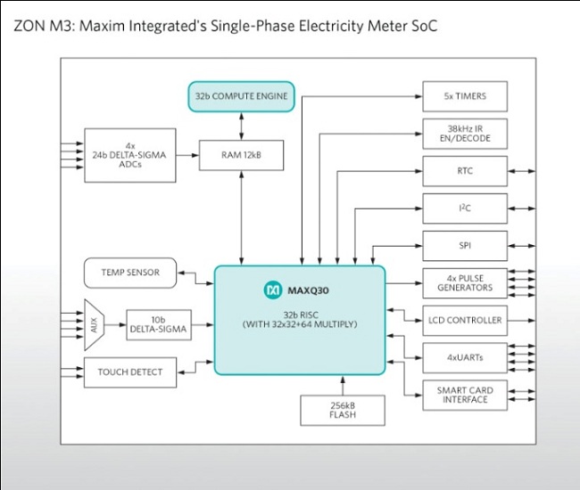 Maxim Integrated推出ZON M3 (MAX71315)单相电表SoC,为设计人员提供高精度、低成本电表和固态表设计方案。
