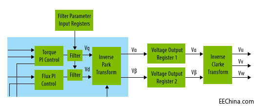 图 3.扭矩控制器和 Park 反变换之间的可编程陷波滤波器能够改进系统的共振。
