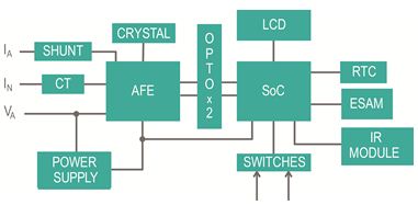 中国的电表技术规范要求电表将计量与数据处理部分相隔离,这一强制标准意味着该国的绝大多数电表均采用类似的架构(图2)。