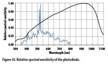 图10中的黑线表明,集成在收发器中的ASIC的光电管的相对光谱灵敏度是与输入光的光波长相关的。由于这是一个对比曲线,给出的都是极限值。